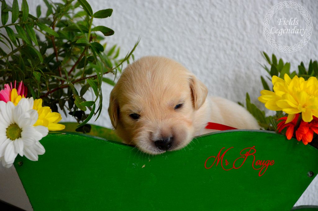 Mr Rouge n'est plus un coeur à prendre, sa future famille a eu un gros coup de coeur pour lui. C'est un chiot qui fait beaucoup de bisous et adore les câlins. Plus posé que ses frères et soeurs mais il a quand même ses petits moment de folie. Mr Rouge est né avec une petite tache blanche sur le haut du crâne qui lui donne tout son charme